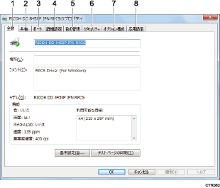 プリンタードライバーの[プロパティ]内の各タブについて説明します。