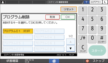 ]を押して「プログラム消去」を選択し、[OK]キーを押します。