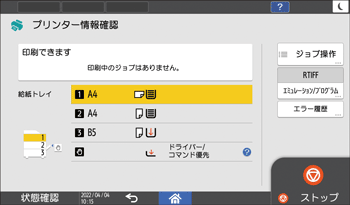 操作部の[ホーム]キーを押して、ホーム画面上の[プリンター]アイコンを押します。