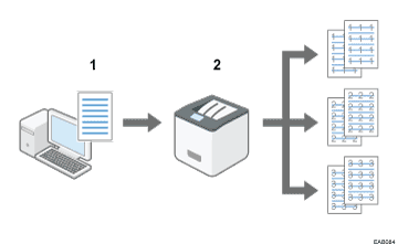 会議資料など複数部数の印刷をするとき、ページ順に仕分け(ソート)して印刷できます。パソコンから送信されてきたデータをメモリーに読み込み、ソートします。
