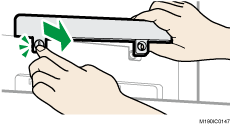 増設トレイを取り外すときは、左右の連結カバーを取り外す必要があります。