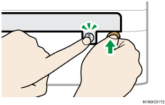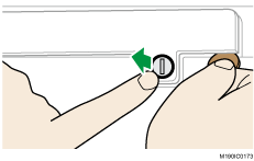 RICOH @Remoteを利用しているときは、LANケーブルを抜いてから移動してください。RICOH @Remoteのアダプターは本機に接続できる位置に移動し、接続されていた端子にコードを正しく接続し、アダプターの電源プラグをコンセントに接続してください。