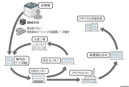 リコーは環境への負荷を低減するため、ご使用いただいた製品の回収・リサイクルを積極的に行っています。回収した製品の部品などは再使用または再資源化し、有効に活用しています。