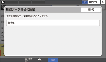 暗号化設定の実行時は本機の操作はできません。