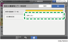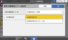 [受信文書蓄積エラー時設定]と押し、受信文書蓄積エラー時設定画面を表示する。