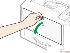 手差しトレイ中央の手差しトレイオープンボタンを押し下げながら、手差しトレイを開きます。