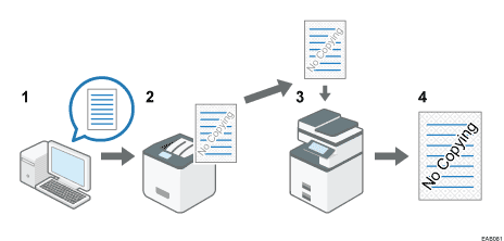 印刷した文書に、不正コピーガード用の地紋と不正コピー抑止文字列が埋め込まれます。