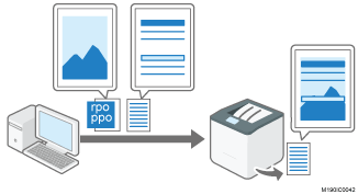 アプリケーションで作成した文書に、別に作成した合成用データを重ね合わせて印刷できます。WindowsからRPCS/PCL6プリンタードライバーで印刷する合成印刷と、印刷コマンドにより本機のエミュレーションで印刷するイメージオーバーレイがあります。