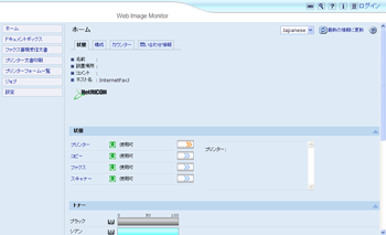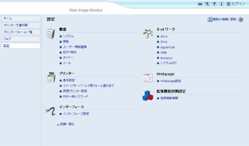 Web Image Monitorの[設定]メニューから、操作画面を表示します。